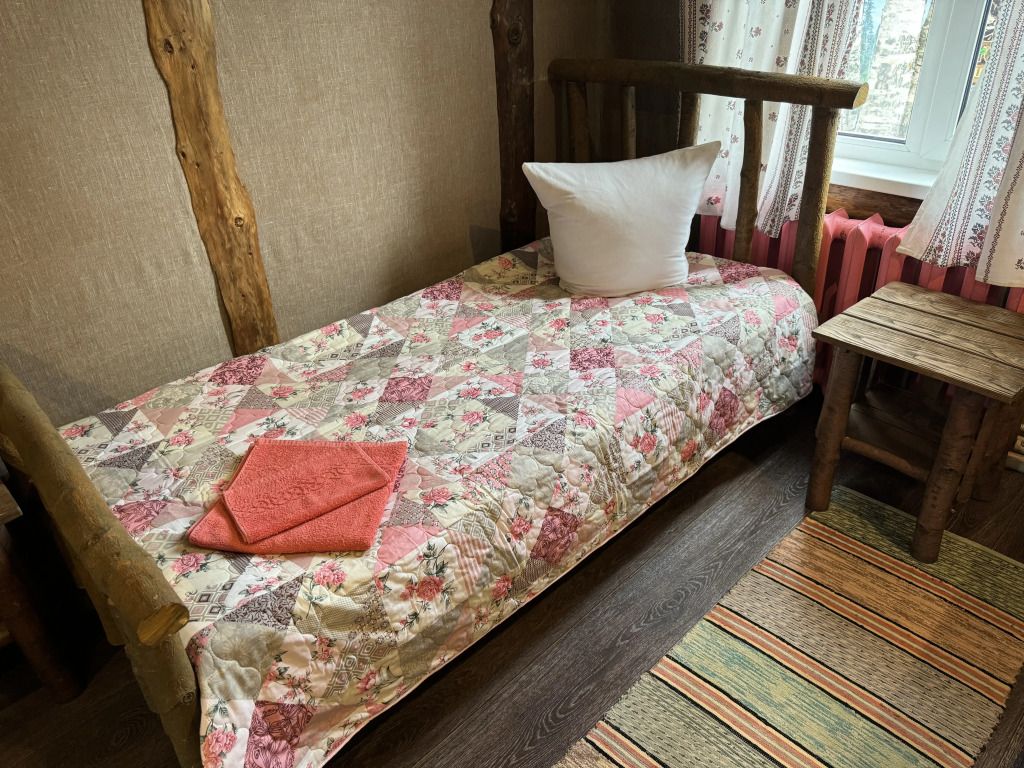 Гостиничный корпус разместился на закрытой благоустроенной территории. В распоряжении гостей комфортабельные номера, стилизованные под былинный русский стиль. В некоторых номерах санузел общий и расположен на этаже, другие оснащены персональной ванной комнатой. На территории есть обеденный и банкетный залы. Отдохнуть и расслабиться гости могут в настоящей русской бане на дровах. Для различных мероприятий предусмотрено два зала: изба с русской печью и трапезная. Внутри – площадка для танцев, музыкальная аппаратура, столики, снаружи установлен мангал, есть шампура, решётки.