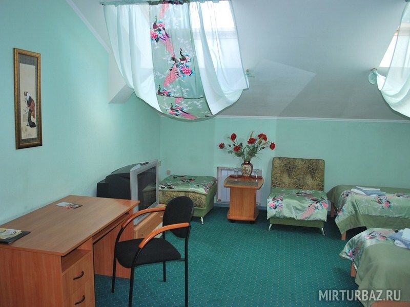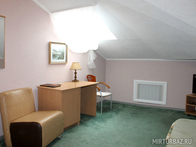 Номер с двумя односпальными кроватями. В номере имеется ЖК телевизор, кондиционер, холодильник, письменный стол, журнальный столик, кресло, стул, шифоньер. Ванная комната с подогревом пола, оснащена душевой кабиной, феном, махровым халатом, комплектом полотенец, туалетными принадлежностями (мыло, шампунь, гель для душа, шапочка для душа, зубной набор, бритвенный набор, шапочка для душа). Махровый халат и тапочки в индивидуальной упаковке.