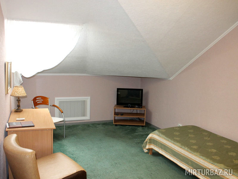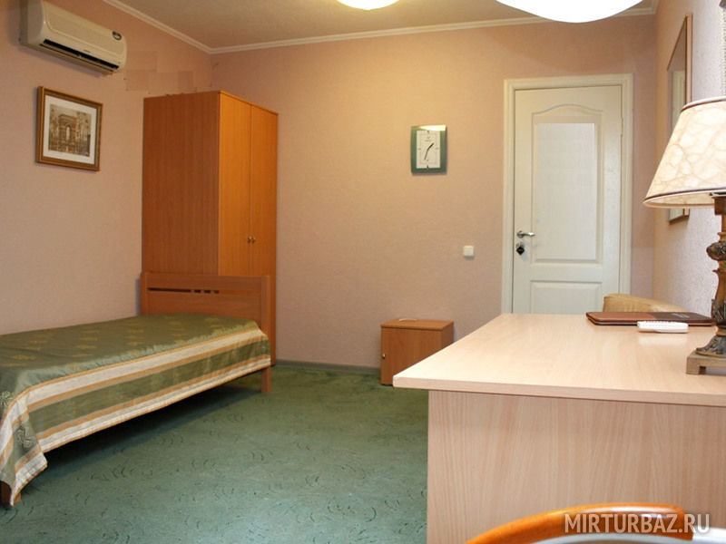 Номер для одного человека с односпальной кроватью. В номере имеется кондиционер, ЖК телевизор, холодильник, фен. Махровый халат, тапочки в индивидуальной упаковке. Ванная комната находится на этаже, непосредственно у номера, оснащена душевой кабиной. Туалетные принадлежности (мыло, шампунь, гель для душа, бритва, зубная щетка) в индивидуальной упаковке, комплект полотец.