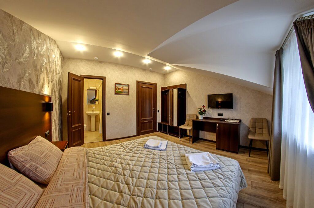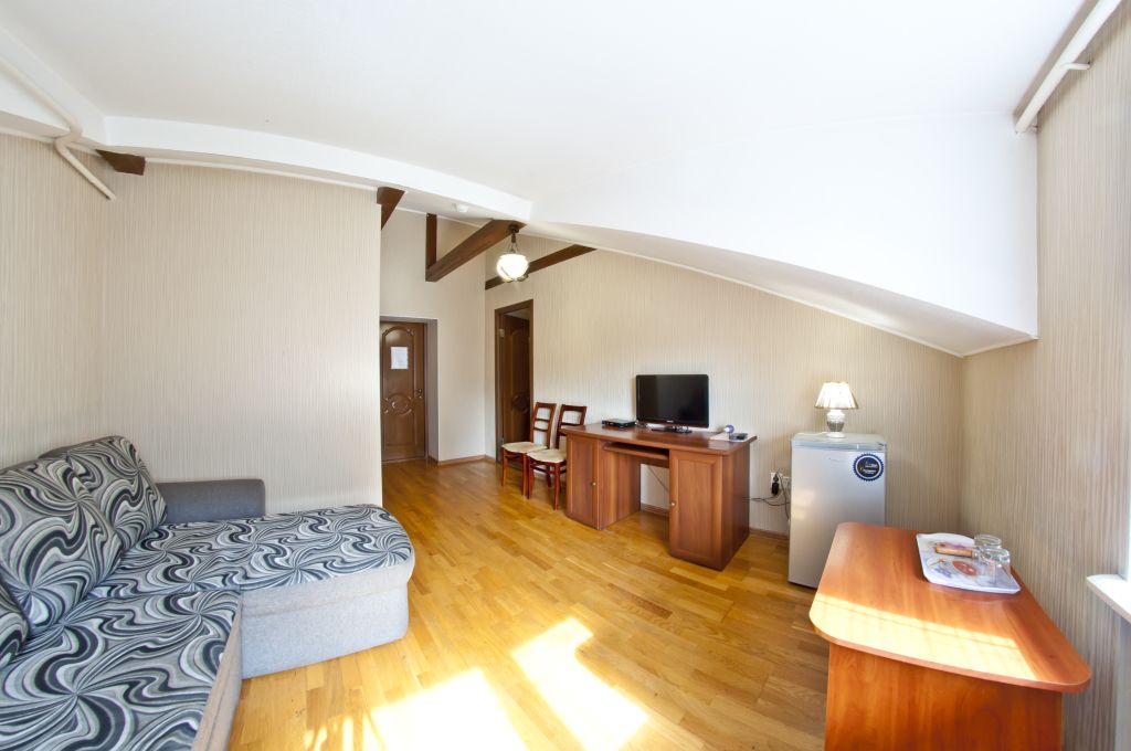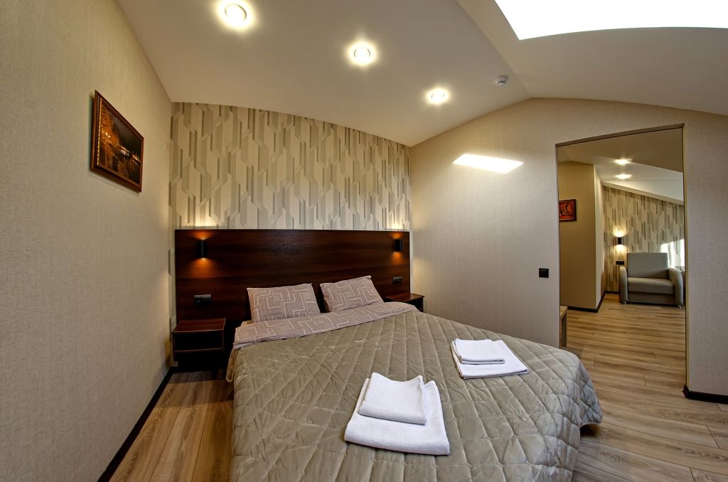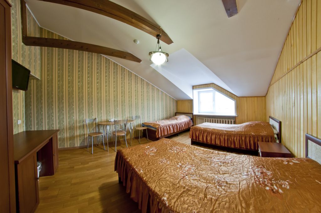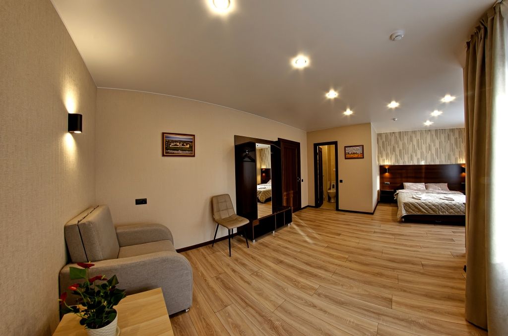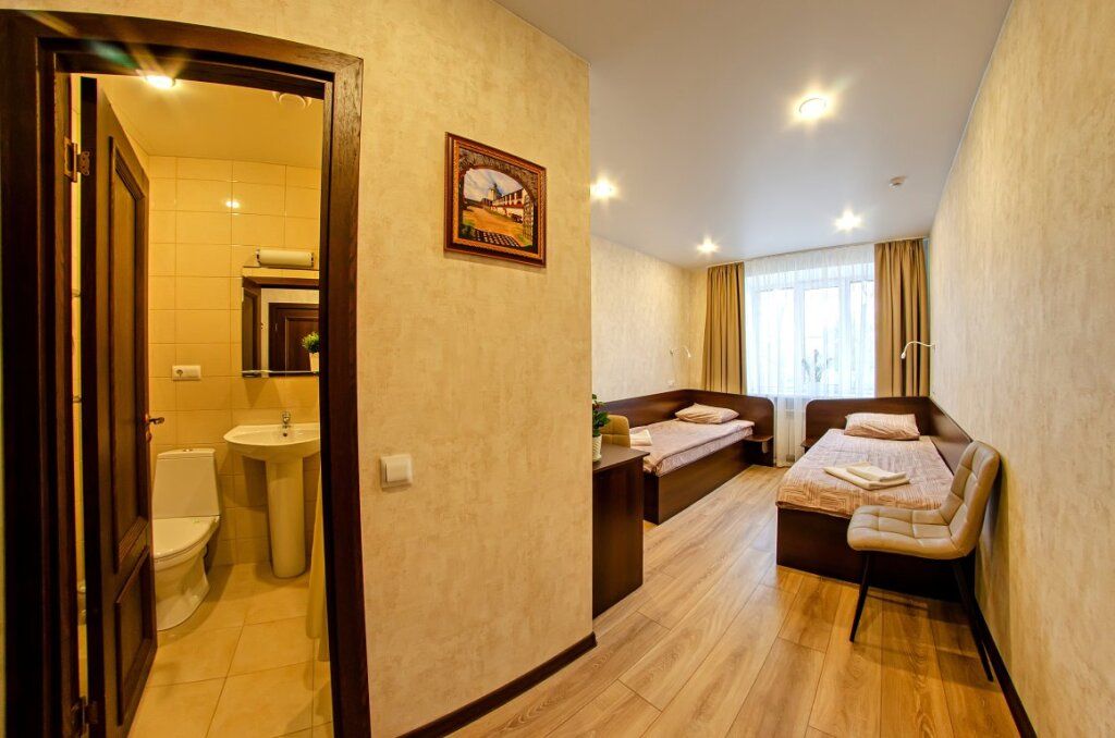 Путешествие с семьейДля активных путешественниковВыбрали отель на пару ночей исходя из сочетания цена/качество. Считаем, что с номером повезло: на последнем третьем этаже, чисто, телевизор работает, на столе стаканы. куллер/чай/кофе есть на первом этаже, там же общий холодильник. На завтрак можно выбрать вариант из предложенного, мне понравилась овсяная каша и бутерброд, достаточно. Во дворе бесплатная парковка.