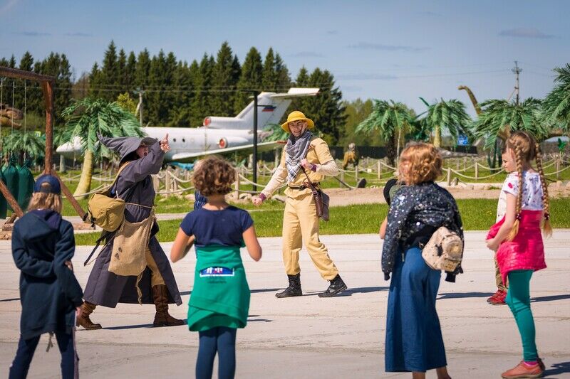 Динопарк удивляет своим масштабом! Самая большая фигура достигает в высоту 6 метров! Динозавры двигаются, рычат, что создает полное погружение в Юрский период. А еще там есть настоящий самолет ЯК-40, раритетный автомобиль Зил «Захар» 1949 года.