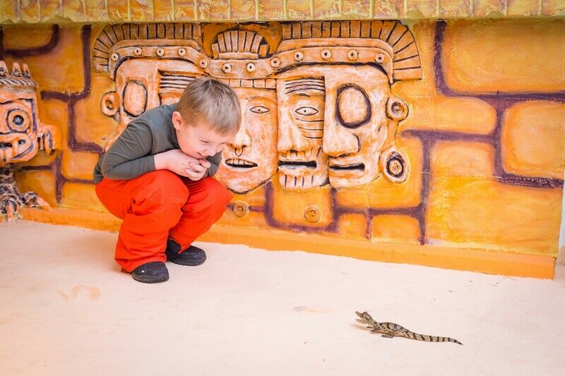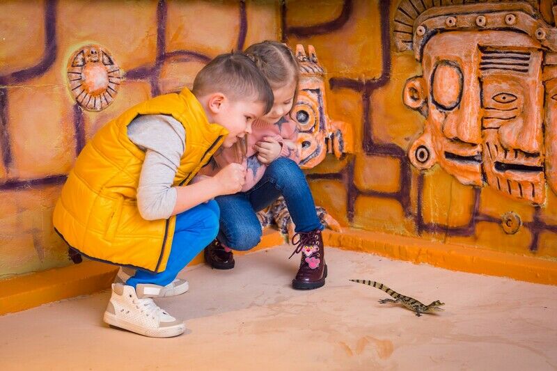 Террариум: крокодиловые кайманы; удав обыкновенный, полоз узорчатый, змея молочная королевская, полоз бамбуковый, паук брахипельма альбопилозум, агама вебера парусная, фельзума мадагаскарская, красноухие черепахи, триболонотус, аргентинский тегу, красная игуана, зеленоватый зонозавр, свиноносый уж, королевская змея, сцинк синеязыкий, эублефар пятнистый, птицеед брахипельма смитти, сцинк огненный, бородатые агамы.