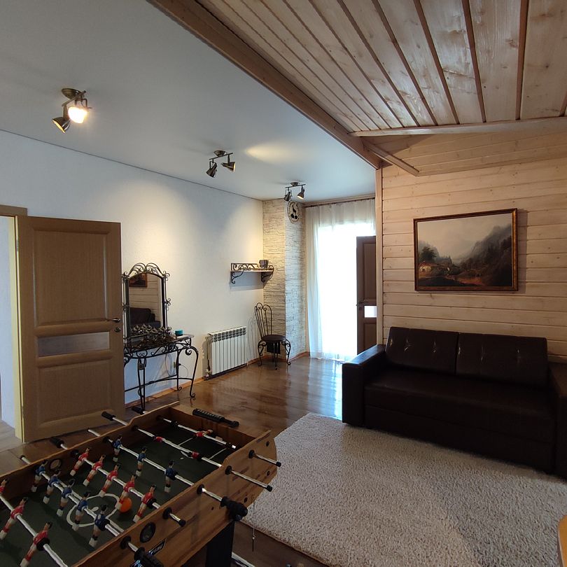 Дом приглашает к роскошному проживанию в просторных спальнях с большими окнами, приготовлению вкусняшек на белоснежной кухне со всевозможной бытовой техникой. Отдыхайте. Играйте в бильярд и настольный футбол. Медитируйте. Встречайте чарующий закат на закрытом балконе с другой стороны дома.