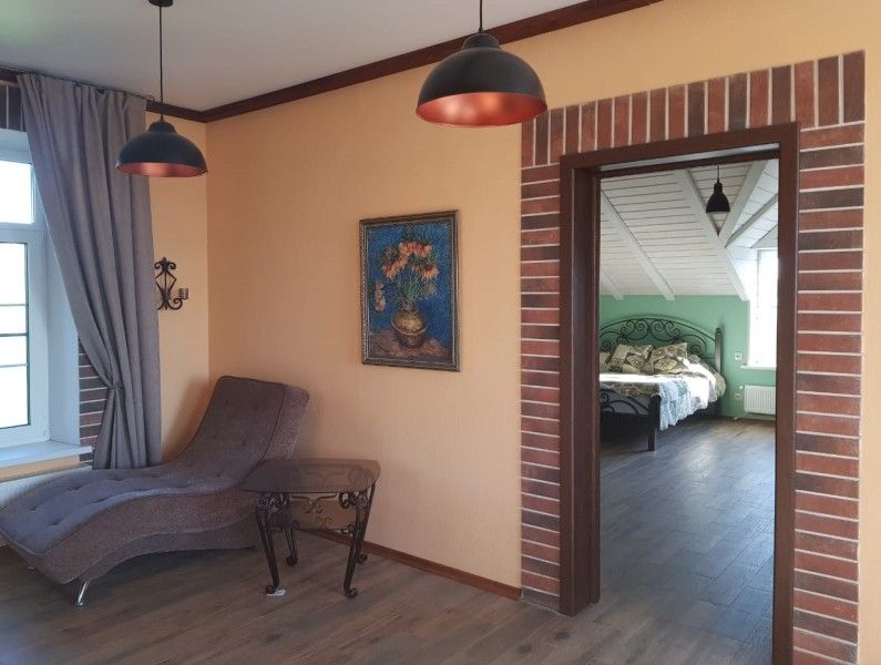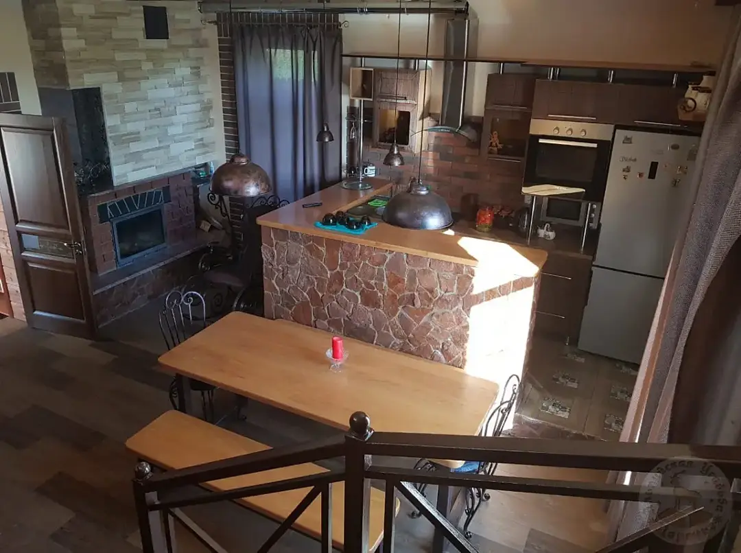 Крошечный замок в стиле Историк Лофт — именно так представляется «Тироль», утопающий в роскошной зелени виноградников, хвойных и плодовых деревьев. Чего здесь только нет… Сауна в одном конце дома, а в другом — альпийская печка.