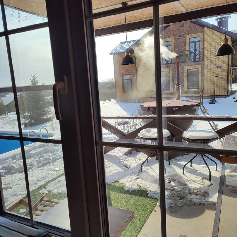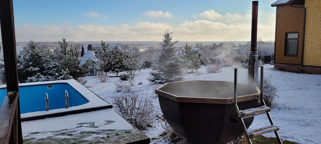 Банный чан — это уютное место, где можно наслаждаться горячими водами в любую погоду. Он рассчитан на 6–8 человек и оборудован дровяной печкой, которая обеспечивает комфортный прогрев.