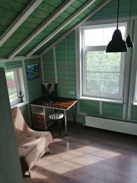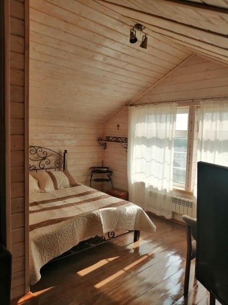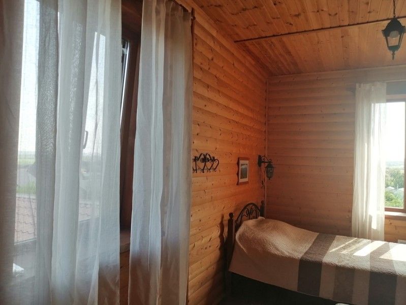 На первом этаже — сауна, русская печь, кухня, гардеробная комната и санузел. На втором — уютная спальня, а также фантастически красивые виды из окна на окружающую природу, восходящее солнце, просыпающийся и засыпающий Воронеж.