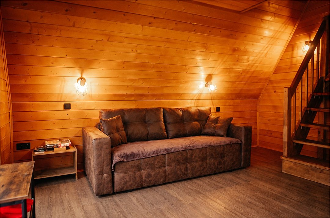 Окунитесь в атмосферу спокойствия, оставив позади суету городской жизни, в нашем уединенном доме в стиле афрейм. Здесь вы найдете всё, что нужно для идеального отдыха. Светлая и просторная гостиная создаёт условия для приятных бесед и отдыха после активного дня.