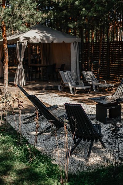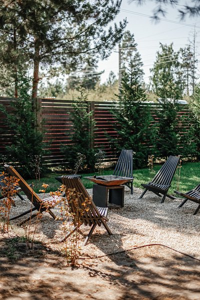 Главное правило — уважение к себе, к природе и к остальным. Если вы любите музыку, вы можете воспользоваться колонкой Sber boom, которую найдёте в домике.