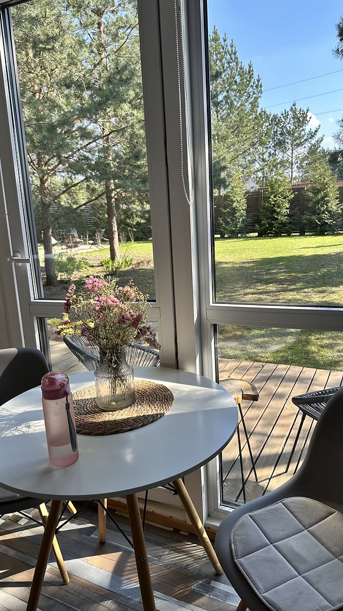 Семейный отдыхДостоинстваОтличное место, чтобы отдохнуть вдвоем! Очень эстетично и романтично. Невероятно красиво на участке, сам участок находится посреди леса. Огромное окно во всю стену домика дает почувствовать, что вы спите прямо под соснами. Тишина, пение птиц, нет насекомых (апрель). Стильный интерьер. Комфорт продуман до мелочей, есть все необходимое для жизни: от фена до сковородок. Вы просто берете еду, а все остальное есть на месте, даже приправы, чай и кофе. Чисто и уютно. Владелец очень дружелюбный и отвечает на вопросы очень быстро. Рекомендую всем, и сами мы вернемся 100%! Большое спасибо за продуманный до мелочей отдых.