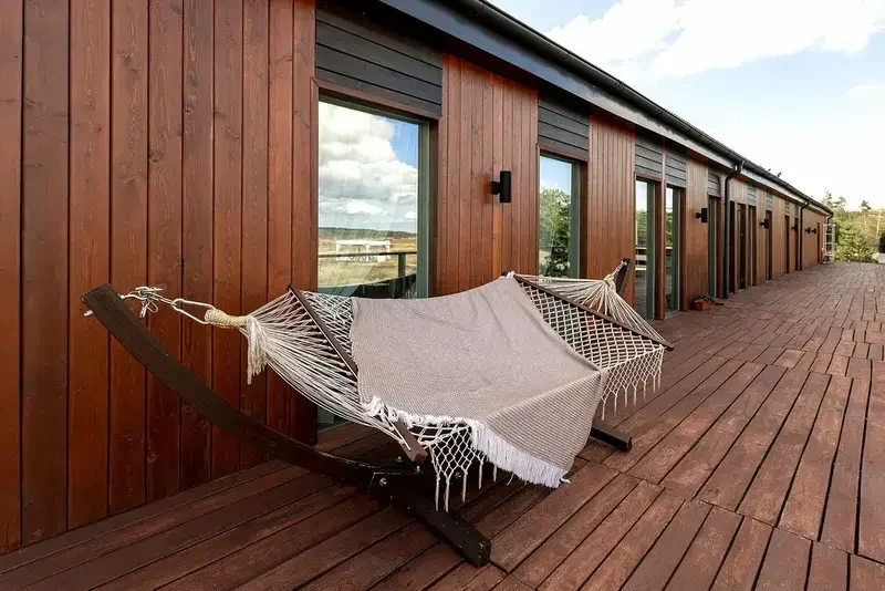 Дом «Барн» повышенной комфортности, с продуманной планировкой для отдыха в тишине и гармонии с природой. К вашим услугам: две раздельные спальни, уютная гостиная зона, полностью оборудованная кухня, а также две просторные террасы с зоной барбекю. Здесь вы сможете насладиться спокойствием и первозданной красотой окружающих пейзажей.