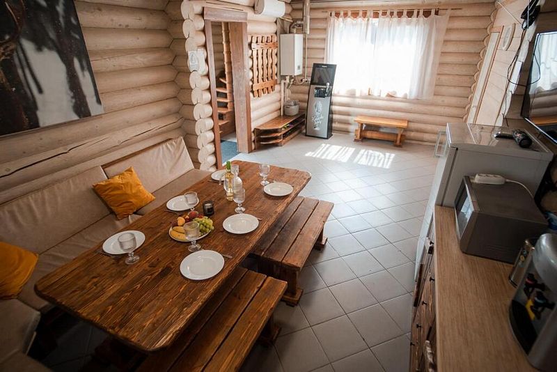 Спальные места рассчитаны для 8-10 человек; 4 спальни с 2-х спальными кроватями + доп. места. Постельное белье. Для детей до 3-х лет имеется детская кроватка-манеж (по запросу). Кухня-гостиная полностью оборудована для комфортного приготовления пищи, есть холодильник, микроволновая печь, чайник, кулер с питьевой водой, посуда, столовые приборы, мешки для мусора. В стоимость включено караоке, спутниковое ТВ, WiFi.