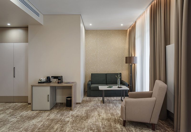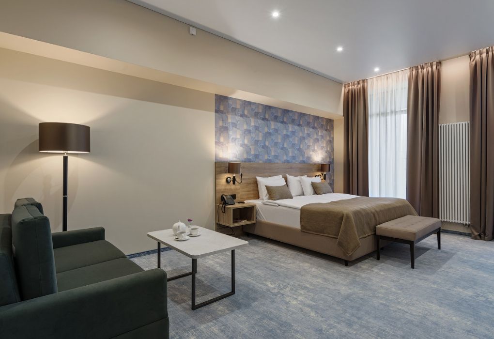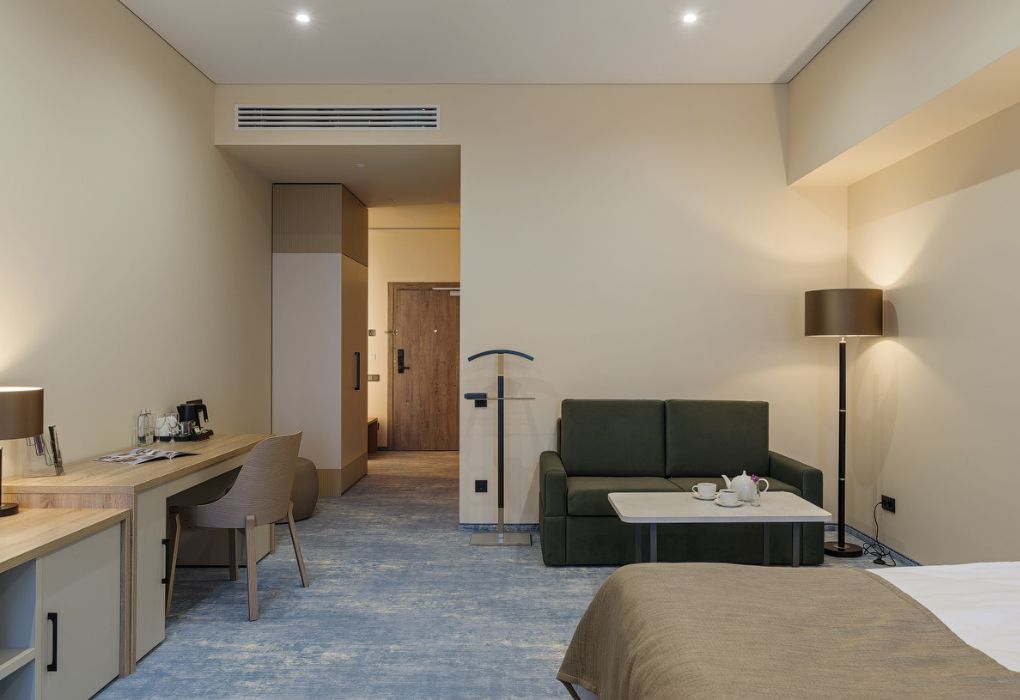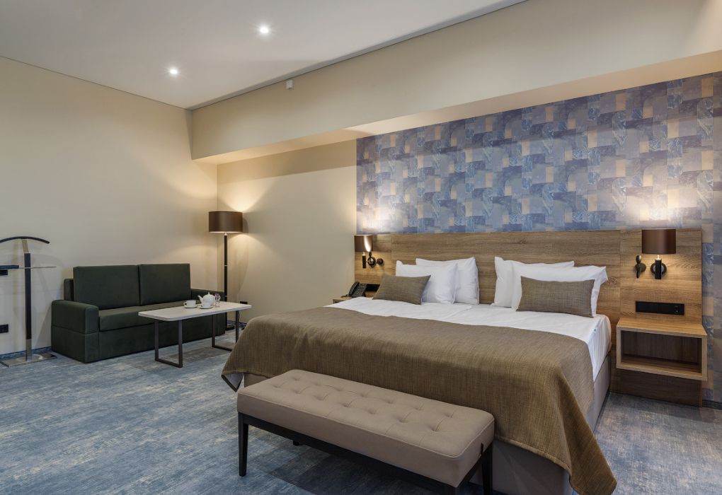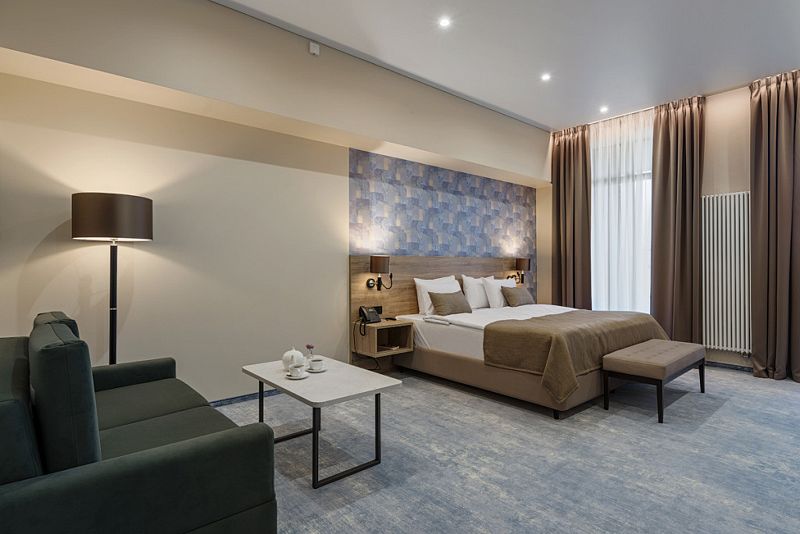 Люкс однокомнатный с двуспальной кроватью или двумя раздельными кроватями и диваном (две раздельные кровати предоставляются по запросу и при наличии возможности).