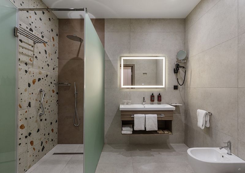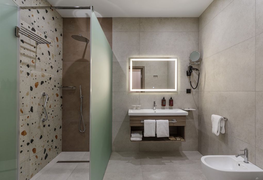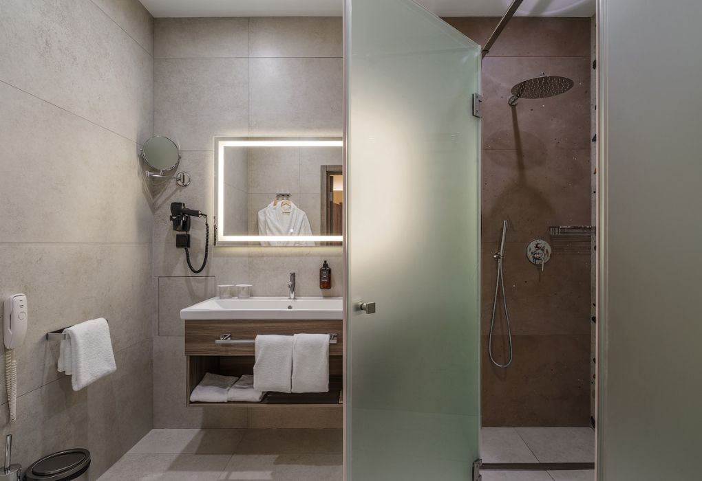 Все корпуса санатория связаны между собой теплыми внутренними переходами, что избавляет гостей от необходимости выходить на улицу при посещении ресторана, СПА-центра или процедурных кабинетов. Здесь же расположены радоновые ванны, благотворно влияющие на здоровье: нормализующие работу внутренних органов и нервной системы, укрепляющие иммунитет и придающие сил. Для комфортного пребывания гостей на территории функционируют ресторан, кофейня и обеденный зал, где представлены разнообразные мясные, рыбные и овощные блюда из экологически чистых продуктов местного производства.