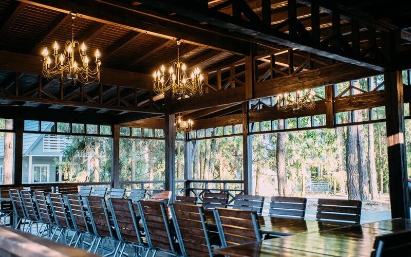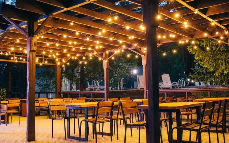 Также есть беседки с летней террасой. Можно организовать любое событие на открытом воздухе В зависимости от количества гостей вы можете выбрать наиболее подходящую вам беседку, в каждой из которых удобная мебель. В большой беседке имеется оборудование для музыкального сопровождения и зона для танцплощадки.