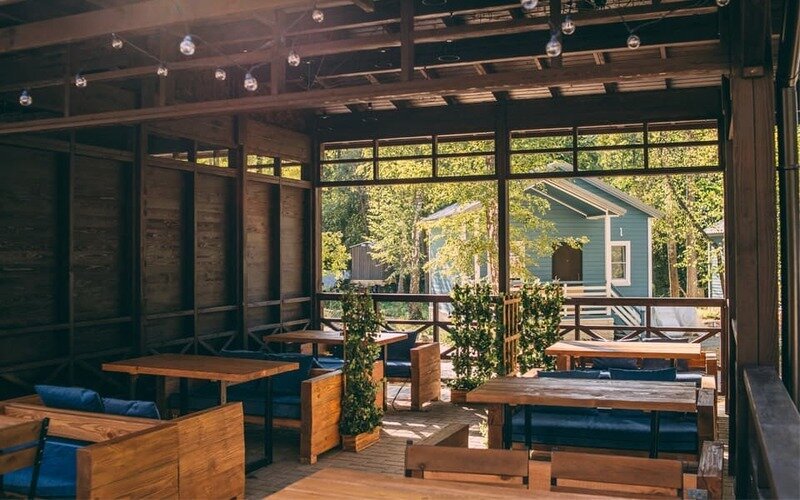 Отдых с друзьямиДостоинстваВпечатление новой базы отдыха. Новые домики, кстати, с вполне приличной звукоизоляцией. Свежее белье, новая мебель, территория , дорожки ровненькие, везде порядок.
