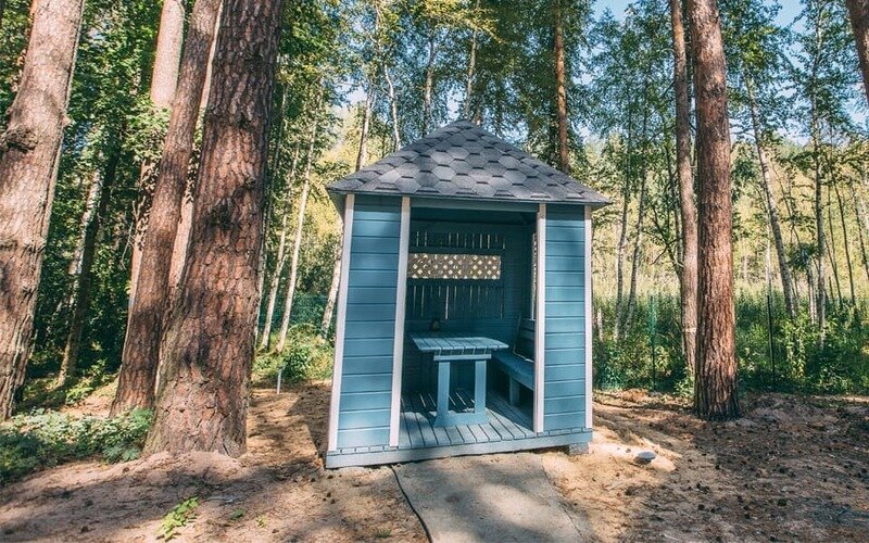 На территории расположены беседки вместимостью до 8 человек. Находятся в свободном доступе для всех проживающих гостей.