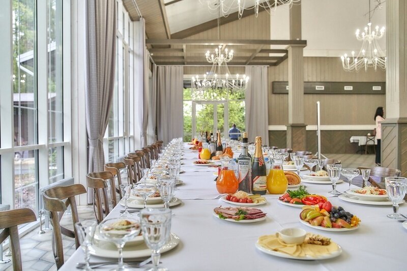 Здесь можно организовать свадьбу, корпоратив, банкет, семинар. Просторный банкетный зал вместит до 120 человек, оформлен в пастельных тонах, и может быть украшен любыми вашими декорациями, чтобы подчеркнуть стиль или тематику мероприятия.