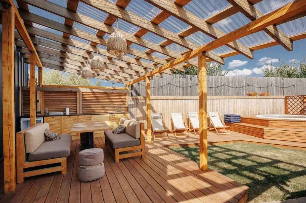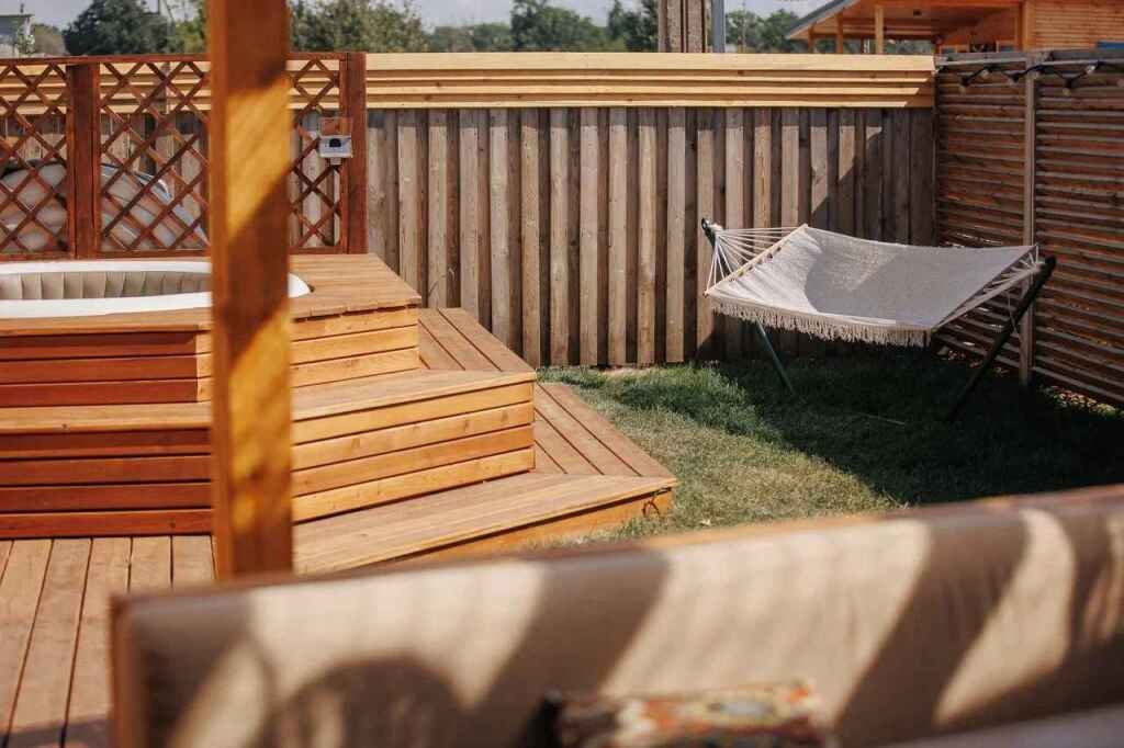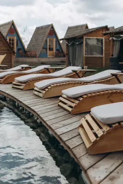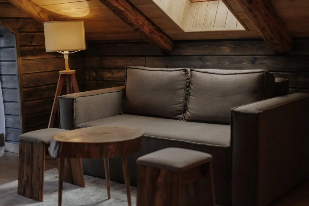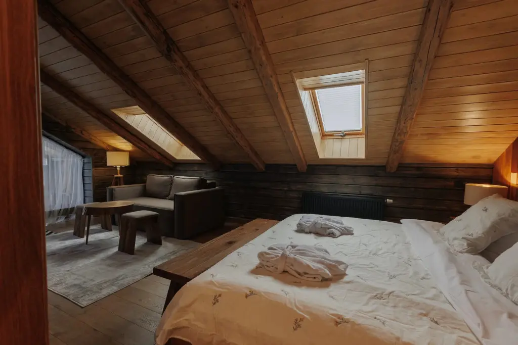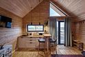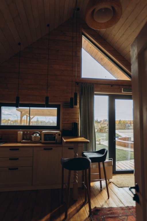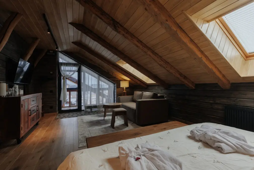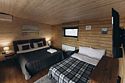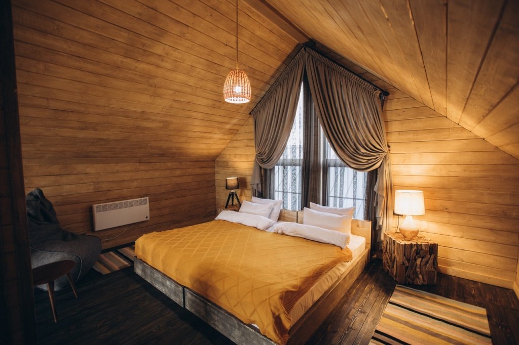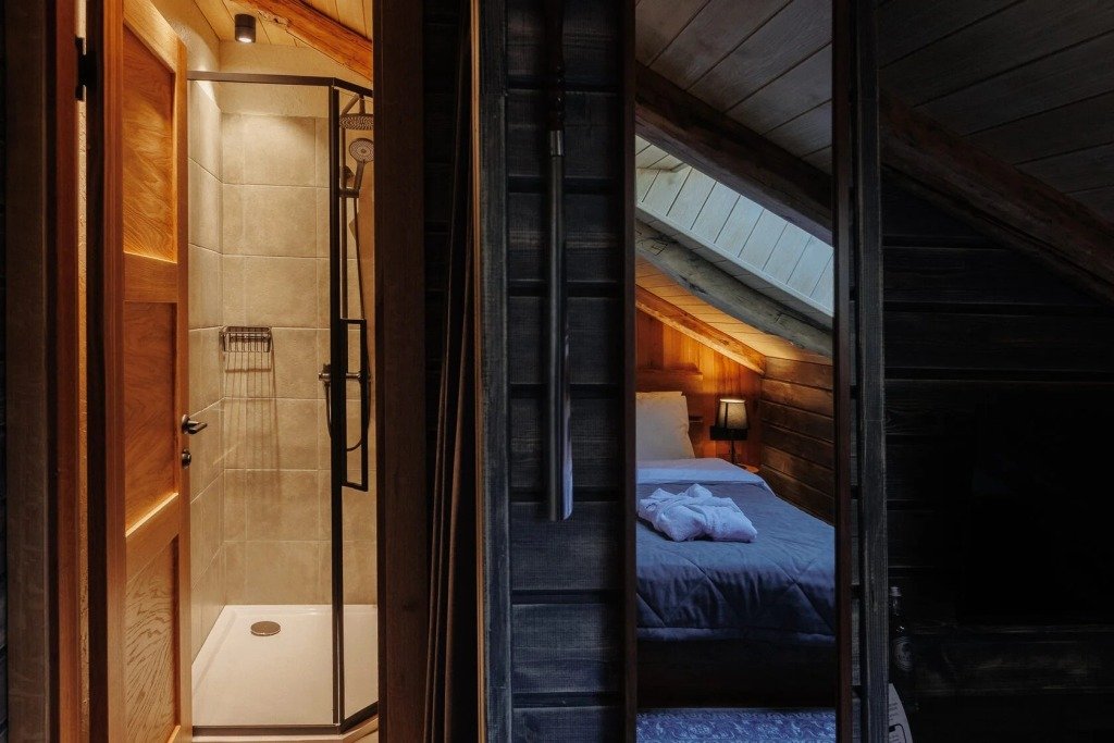Для проживания гостям предоставляются укомплектованные домики с просторными кроватями, диваном для отдыха, большим плазменным телевизором, современной ванной комнатой с халатами, тапочками, косметикой и феном. Для детей предоставляются кроватки либо манежи.