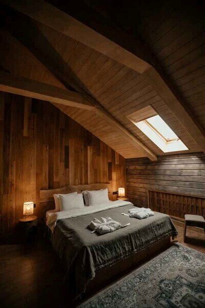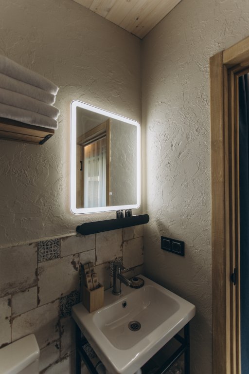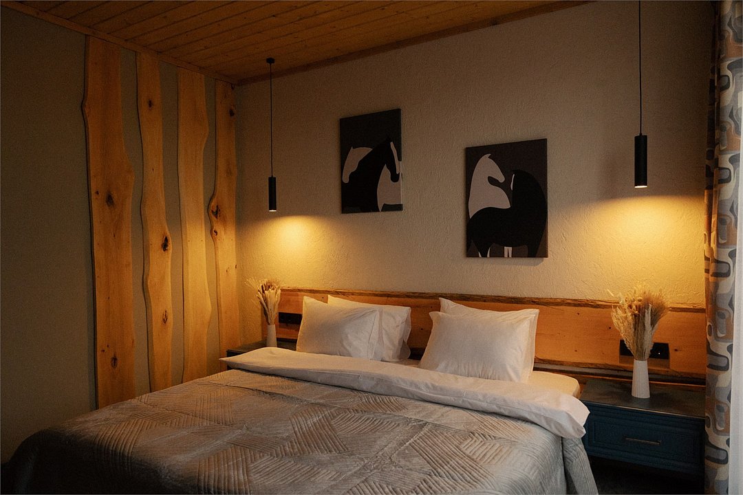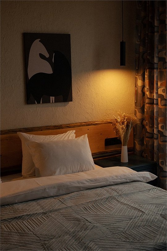 Важным аспектом стало сочетание натуральных, естественных текстур и фактур. Мебель и оформление номеров мы подбирали у локальных ремесленников, ведь именно предметы, сделанные руками создают неповторимую атмосферу. Полы из массива дуба, сантехника их натурального камня, подушки и постельное бельё из жатого льна и хлопка, расшитое вручную.