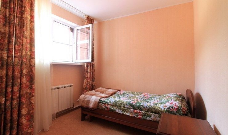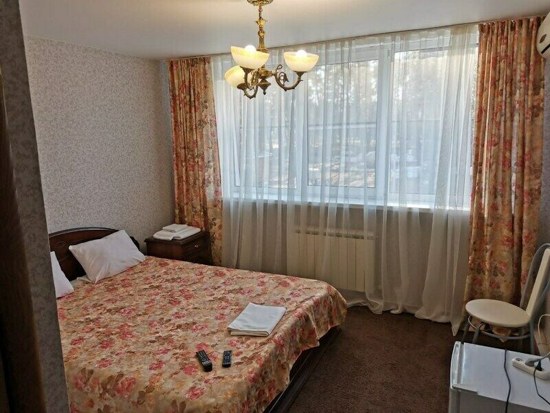 Однокомнатный номер со всеми удобствами с двуспальной кроватью, телевизором и холодильником, с кондиционером. Возможность обеденным залом на первом этаже корпуса "Витязь".