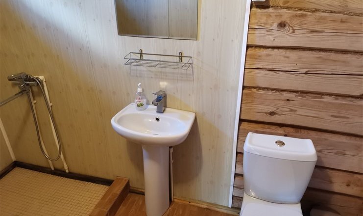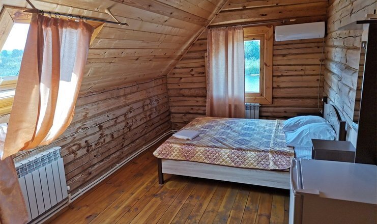 Комфортабельный двухэтажный номер в коттедже из натурального дерева. На первом этаже: открытая терраса для отдыха, кухня с обеденной зоной, гостиная с раскладным диваном, спальня с двумя раздельными кроватями, санузел с душем, кондиционер. На втором этаже - спальня с двуспальной кроватью и санузел. Собственная зона барбекю с мангалом. Место для парковки.