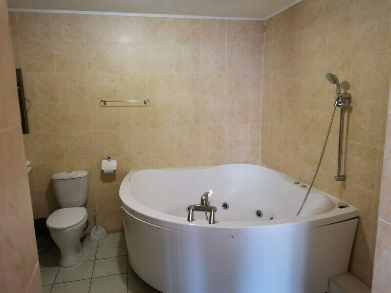 Однокомнатный, двуспальная кровать, сан. узел, ванна джакузи номере, телевизор, холодильник. Доп. место – диван.