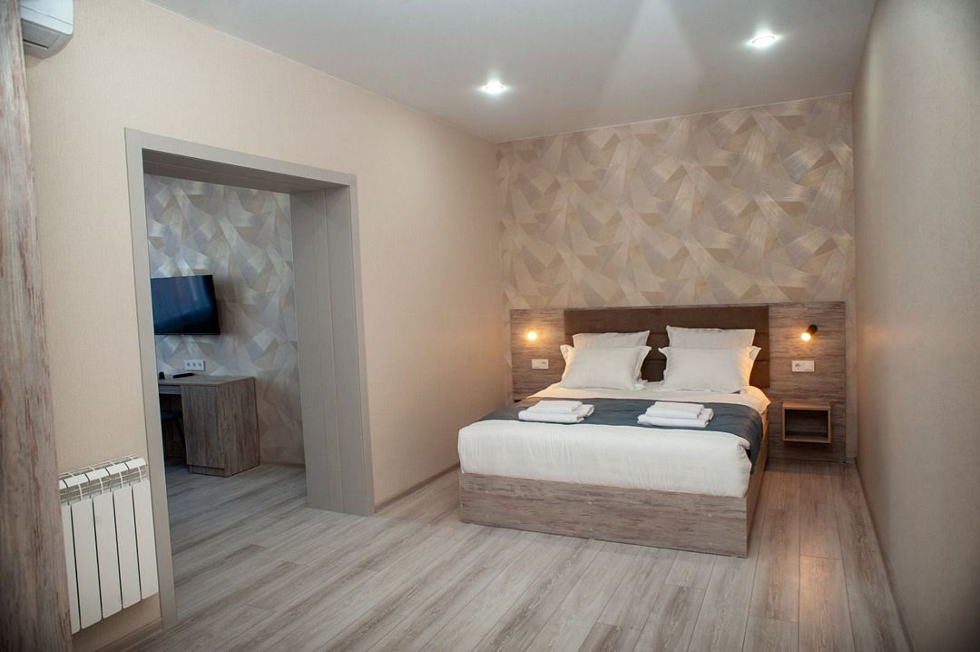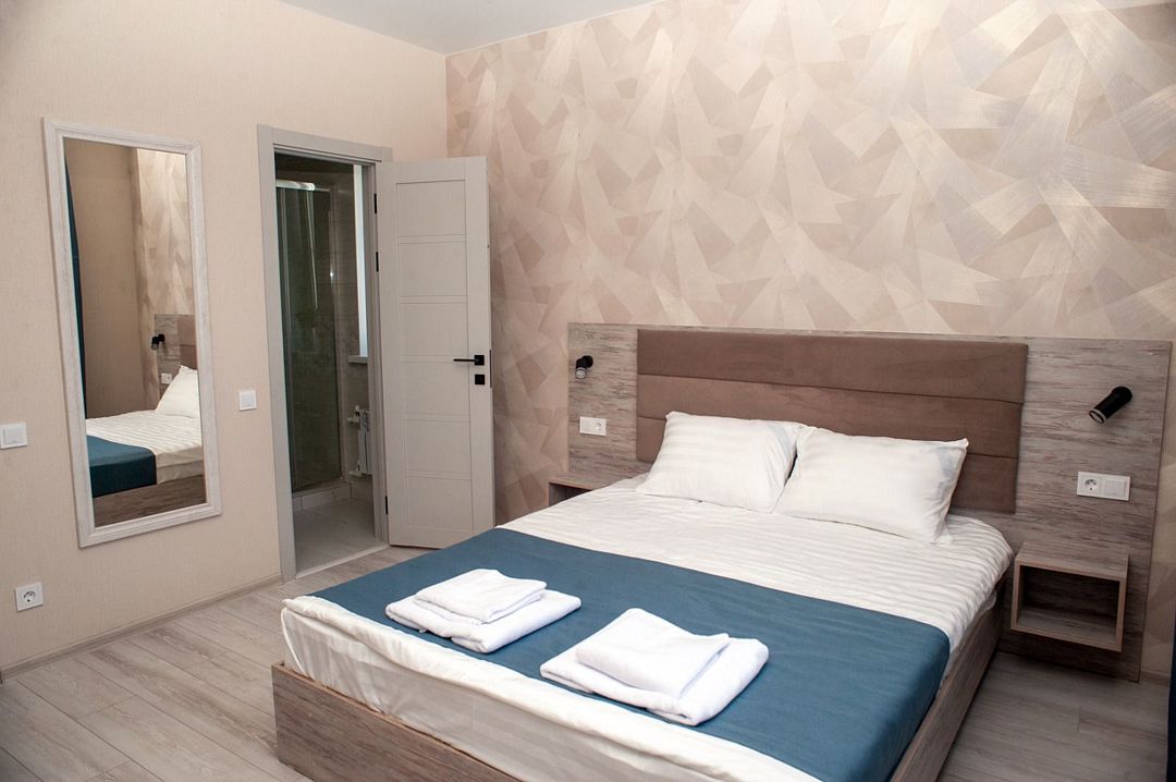 Все номера оснащены удобными кроватями с ортопедическими матрасами, сплит-системами, современными плоскими телевизорами, холодильниками и просторными шкафами для одежды. В каждом номере есть индивидуальная ванная комната с теплым полом, душем, туалетом, раковиной, феном, а также набором полотенец и гигиеническими принадлежностями.