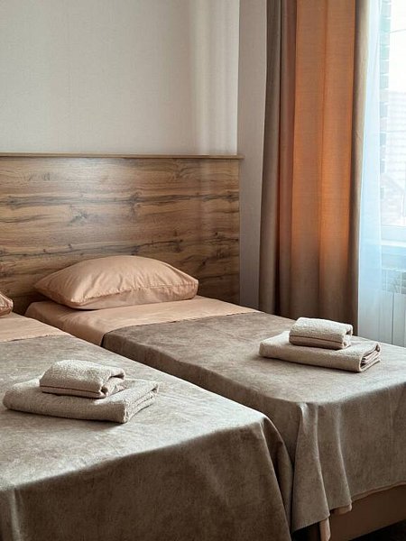 Данный номер оснащен тремя спальными местами. Конфигурация спальных мест возможна по вашему усмотрению: двуспальная кровать (состоящая из двух зафиксированных односпальных) + односпальная кровать или три раздельных односпальных кровати. Как и во всех наших номерах SMART TV, Wi-Fi с безлимитным доступом, сплит-система для регулирования комфортной температуры.