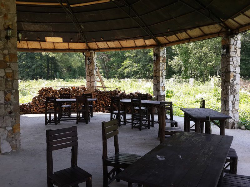 Всего на территории 6 беседок. Вместимость каждой беседки: 12 человек. Отлично подойдет для проведения корпоративов, свадеб и презентаций.