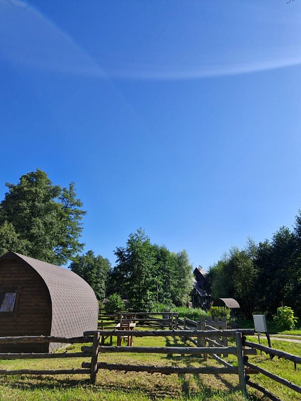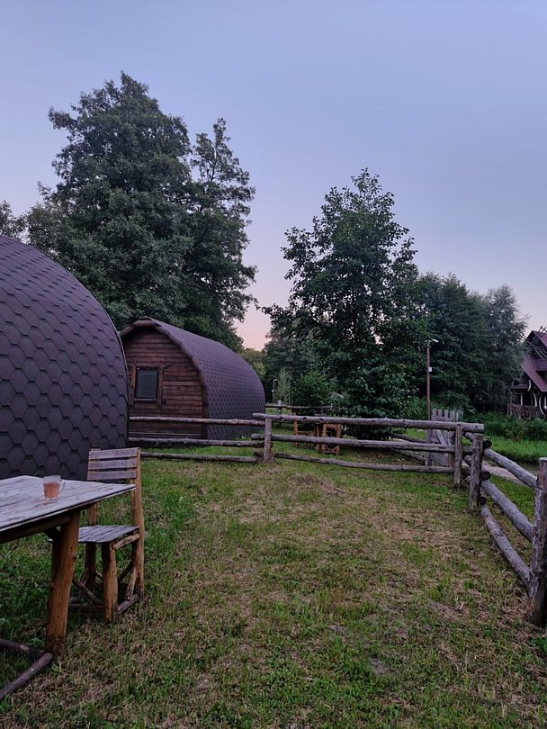 Отдых с друзьямиДостоинстваОчень атмосферное, необычное место . Выдержанный стиль . Можно и порыбачить и грибы собрать. Для любителей - лучшее место для отдыха!В домиках тепло и уютно (мы были в конце сентября). Классная мануальная территория. Нам очень понравилось !