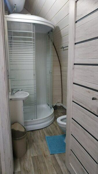 3 Глэмпинга со всеми удобствами на берегу реки Воронеж. Благоустроенный мини-дом, 2 спальный диван, 1 спальный диван, детская кроватка по запросу, душ, туалет, холодильник, плита.