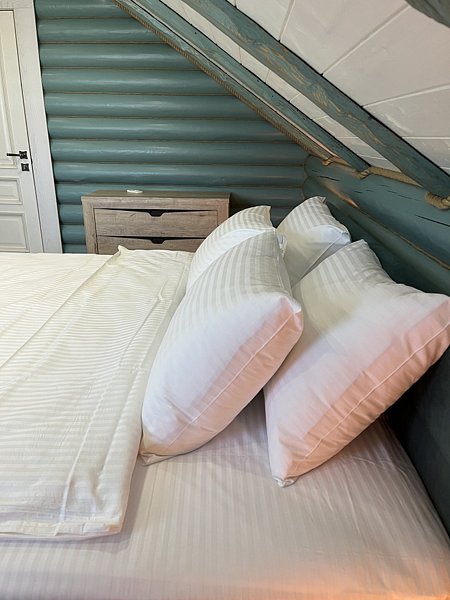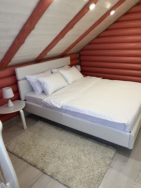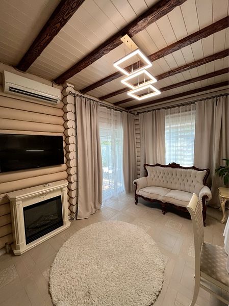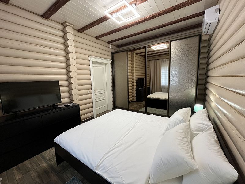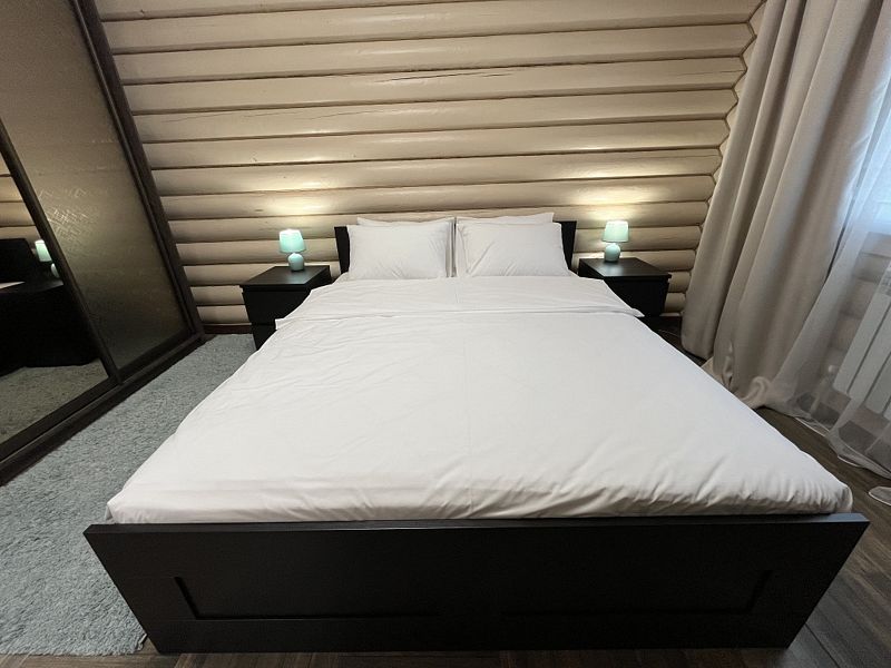Просторная кухня-гостиная со всей необходимой мебелью и бытовой техникой; 4 спальни и кровати с ортопедическими матрасами; два санузла с ванной, душевой и гигиеническими средствами; баня и чан.