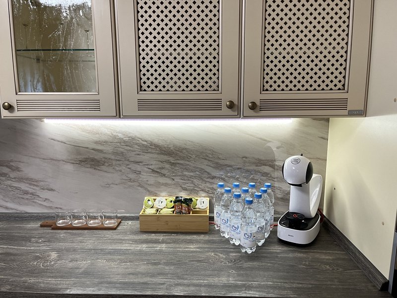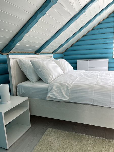 Гостевой дом подходит для отдыха с семьёй и друзьями, а также для организации праздничных мероприятий. В доме имеется кухня-гостиная со столом на 10 персон, необходимая посуда и бытовая техника, включая посудомоечную машину, духовой шкаф, кофе-машину, тостер и чайник. Имеется четыре спальни с кроватями с ортопедическими матрасами: 2 спальни с кроватью 160x200, 1 спальня с кроватью 180x200 и 1 спальня с двумя кроватями 140x200. Предусмотрена детская кровать 80x120. Каждая комната оснащена платяными шкафами, комодами, прикроватными тумбочками, кондиционерами, халатами и тапочками. Есть два санузла с ванной, душевой, стиральной машиной и средствами гигиены.