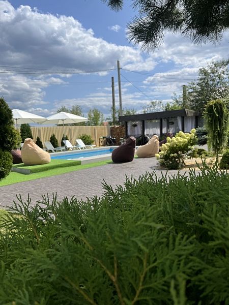 Для развлечения и отдыха на территории есть аквабеседка — чан на дровах; русская баня с дубовыми вениками; тёплый бассейн 7 м x 4 м, глубиной 1.60 м, с постоянной фильтрацией воды. Также есть зона барбекю и беседка, мангал, казан на 12 л, тандыр, решётка, шампура, мебель из ротанга, пледы для прохладных вечеров.