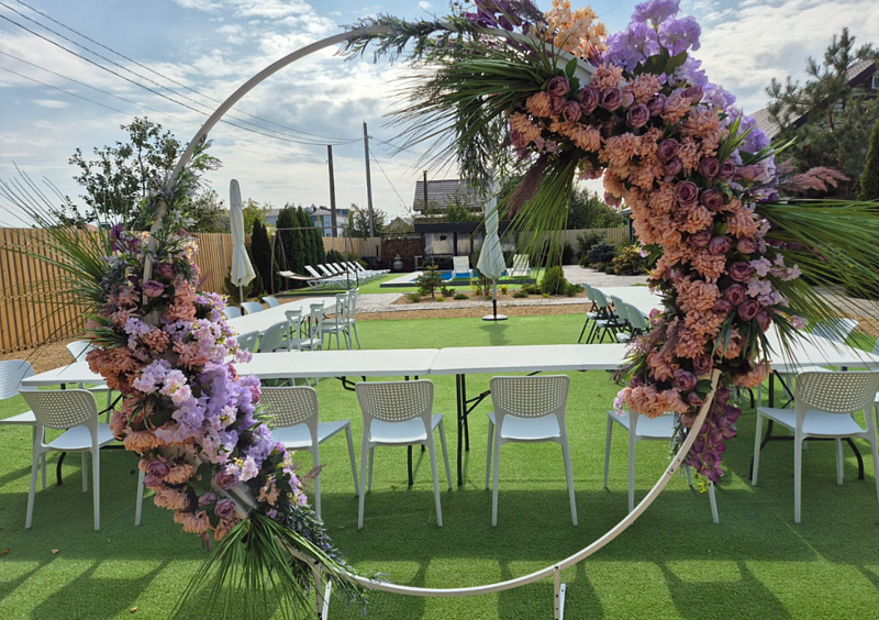 За дополнительную стоимость по предварительной договорённости возможна подготовка к мероприятию: установка шатра, украшение зала и беседки, можно создать фотозону, организовать сервировку стола. Предоставляются услуги ведущего + DJ, профессиональное звуковое и световое оборудование, а также организация кейтеринга по желанию гостей.