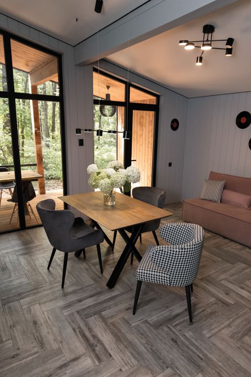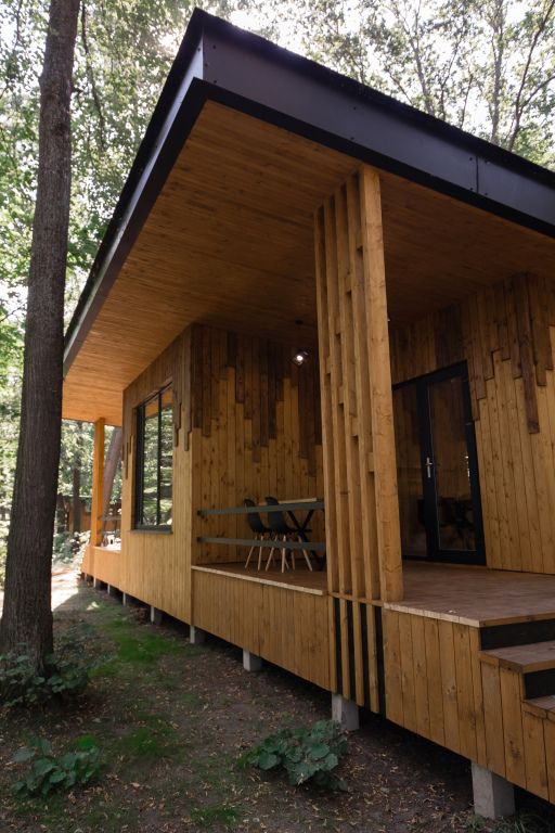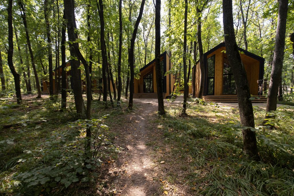 Внутри комплекса можно отдохнуть в панорамных беседках со встроенным грилем, попариться в русской бане, расслабиться в чане с травами, провести время в баре или погулять по лесным тропам.