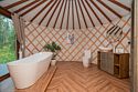 Особую привлекательность юрте придаёт просторная терраса с дизайнерскими лежаками, откуда открываются завораживающие виды на окружающую природу. Здесь вы сможете наслаждаться утренними рассветами и вечерними закатами, погружаясь в атмосферу полного умиротворения.