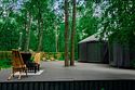 Особую атмосферу создаёт большая терраса с удобными лежаками, откуда открывается потрясающий вид на окружающую природу. Здесь вы сможете наслаждаться утренним кофе или вечерними закатами, вдыхая свежий воздух и слушая пение птиц.