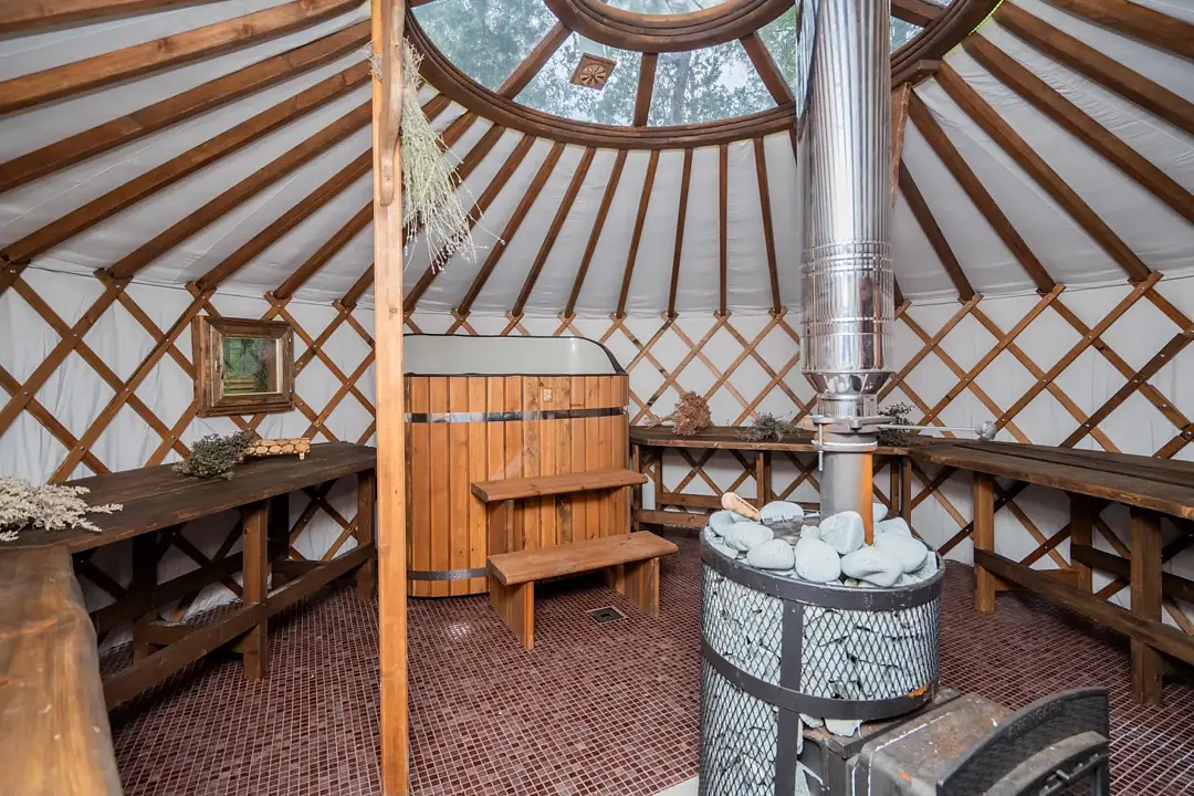 Территория вокруг юрты предлагает множество возможностей для отдыха: просторная мангальная зона, уютная баня, купель и специально оборудованные места для пикников позволят вам провести время с пользой и удовольствием.