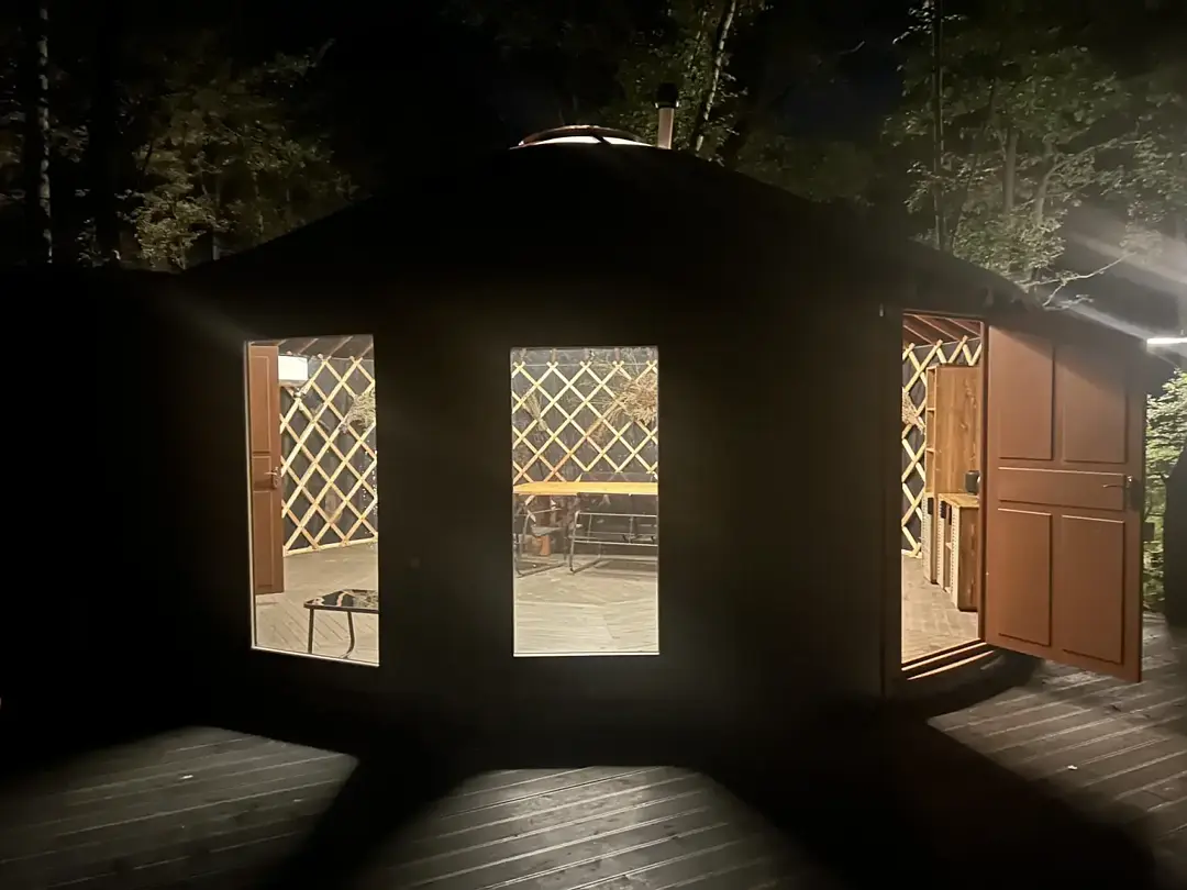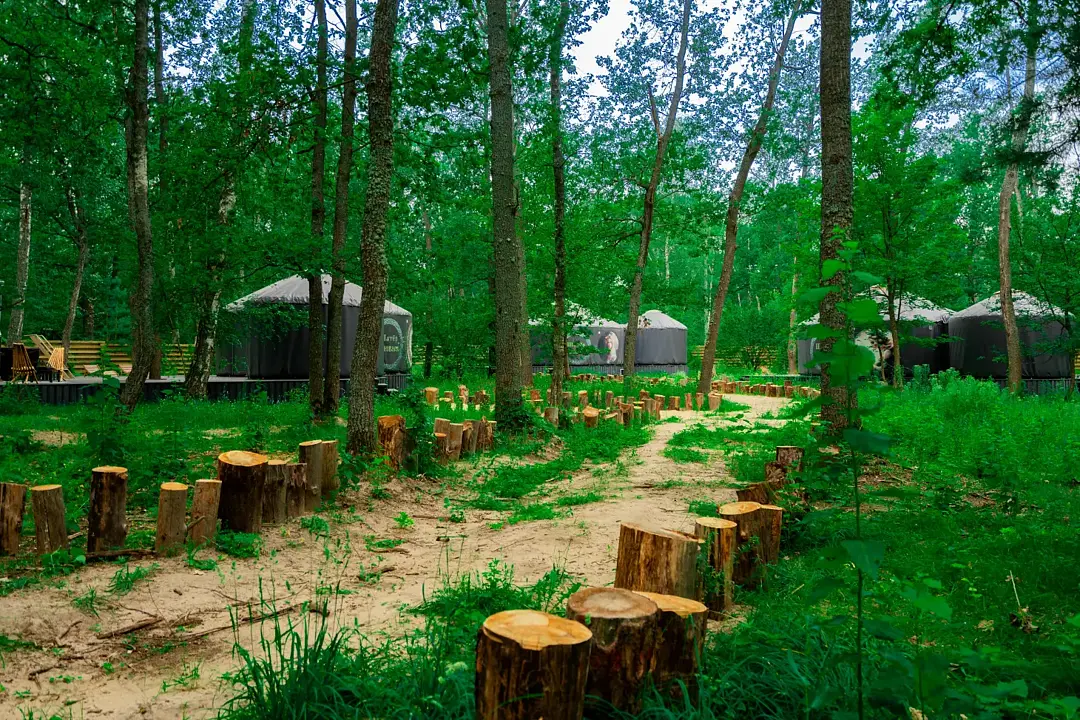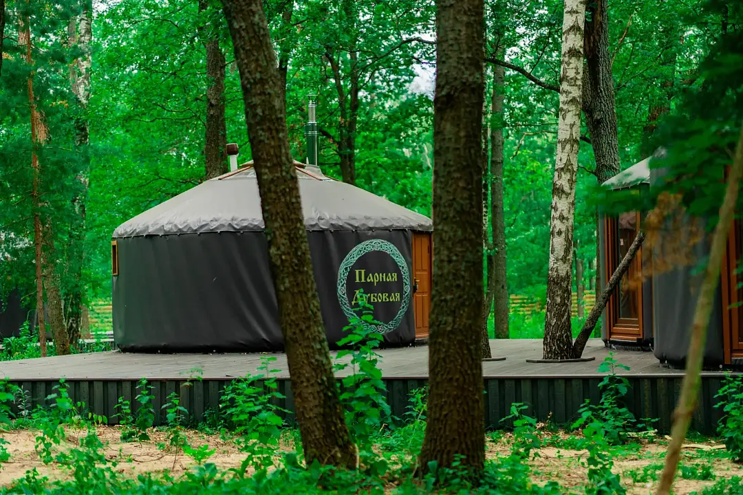 Окружённая вековыми деревьями, юрта создаёт неповторимую атмосферу умиротворения и единения с природой, где каждый звук леса и дуновение ветра становятся частью вашего отдыха.