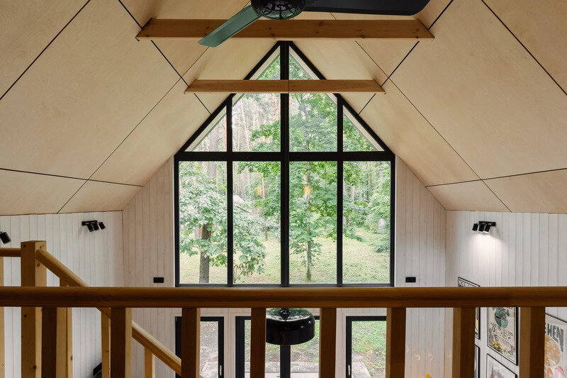 Первая спальня имеет собственный выход на задний дворик. На втором этаже просторная спальня с видом на лес. Функциональная кухня позволит вам приготовить и сервировать почти любое блюдо. У коттеджа выход на открытую веранду с уличной мебелью, где гости любят ужинать под светом гирлянды.