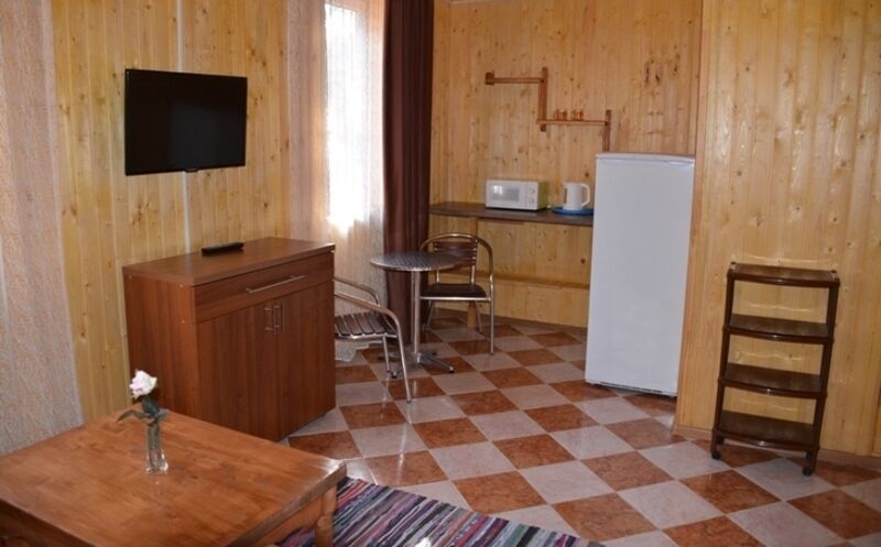 Номера укомплектованы односпальными кроватями, столом и стульями, постельным бельем. Душ и санузел на улице.