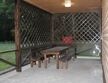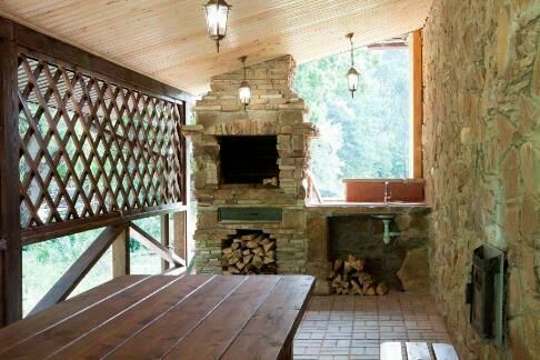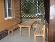 - Веранда, это место под навесом, где уютно размещен большой деревянный уголок для трапезы , а так же в дождливую погоду хватит площади для танцев.
