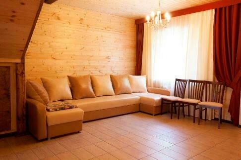 Большую гостиную, которая подарит каждому ощущение домашнего уюта и удобства. В ней есть: холодильник, спутниковое телевидение, микроволновая печь, посуда для каждого гостя, кухонный гарнитур, большой обеденный стол и мягкий уголок, который имеет два спальных места.