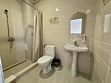 В номере находится одна двуспальная кровать, две полуторные кровать, прикроватные тумбы, шкаф для одежды, стол, стул, телевизор. В ванной комнате находится ванна, туалет, раковина.