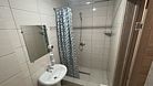 Однокомнатный номер с двуспальной кроватью и диваном, телевизором и холодильником. Чайник и чашки. Просторная ванная комната с гигиеническими принадлежностями.