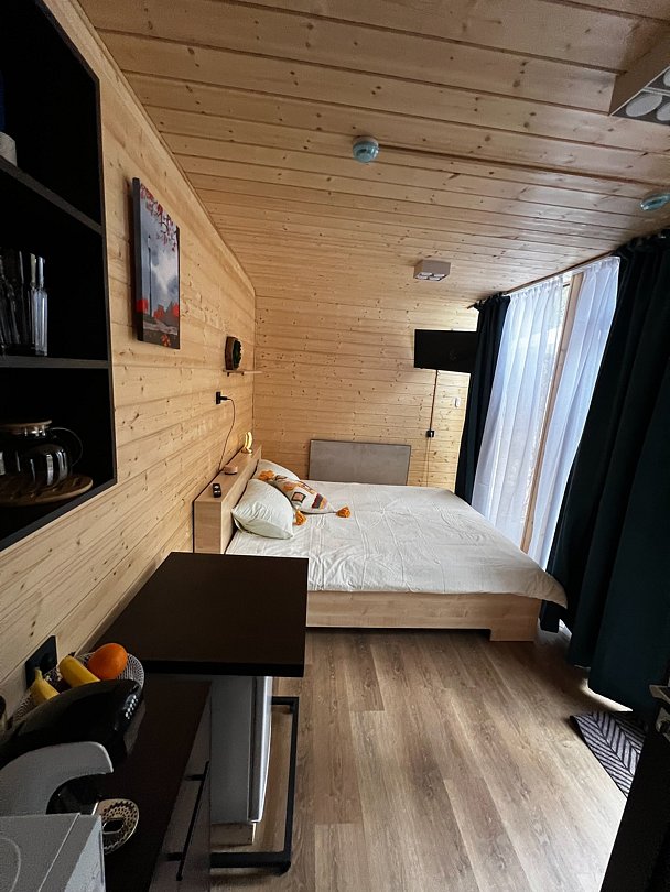 Расположенные вблизи домиков, чаны легко доступны для вас в любое время. Представьте себе: вечер, мягкий свет заходящего солнца, окружающий вас лес, тишина и теплые воды чана, которые мягко обволакивают тело, создавая ощущение полного покоя и умиротворения. Этот опыт станет незабываемым дополнением к вашему отдыху.
