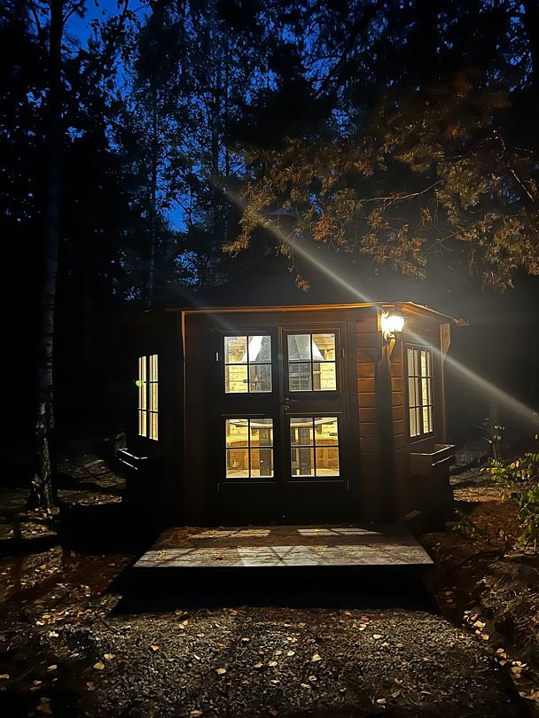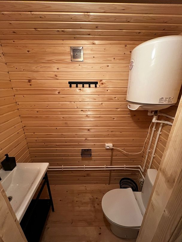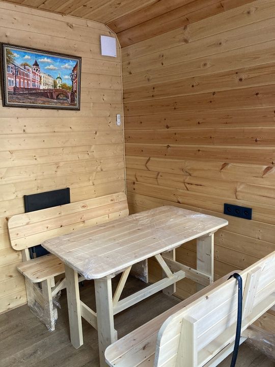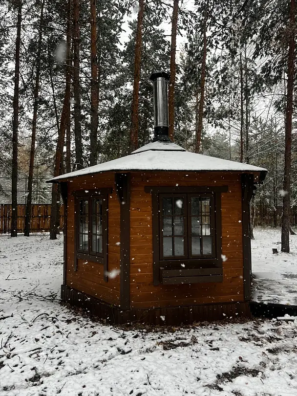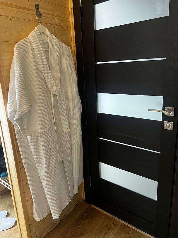Дополнительно можно взять в прокат халат, приобрести веник, запарить чан, и забронировать соседний домик для двоих. Вместимость до 8 взрослых. Минимальное время аренды — 2 часа.