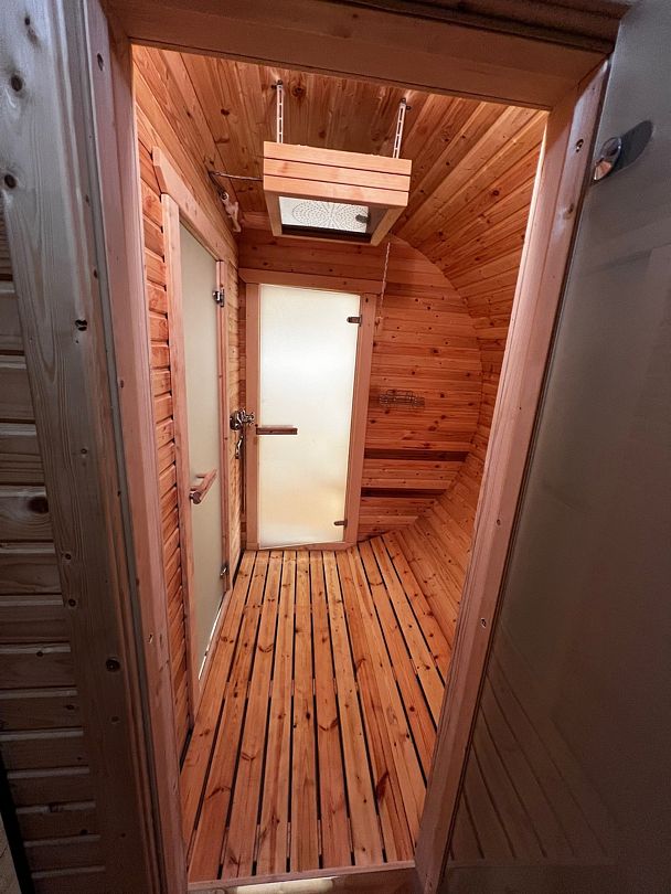 Инфраструктура: зона отдыха, шапочки, душМинимальное время аренды: 2 часаИзюминка парной — специальный люк, который позволит дышать свежим лесным воздухом пока вы находитесь в парилке лежа на полках.