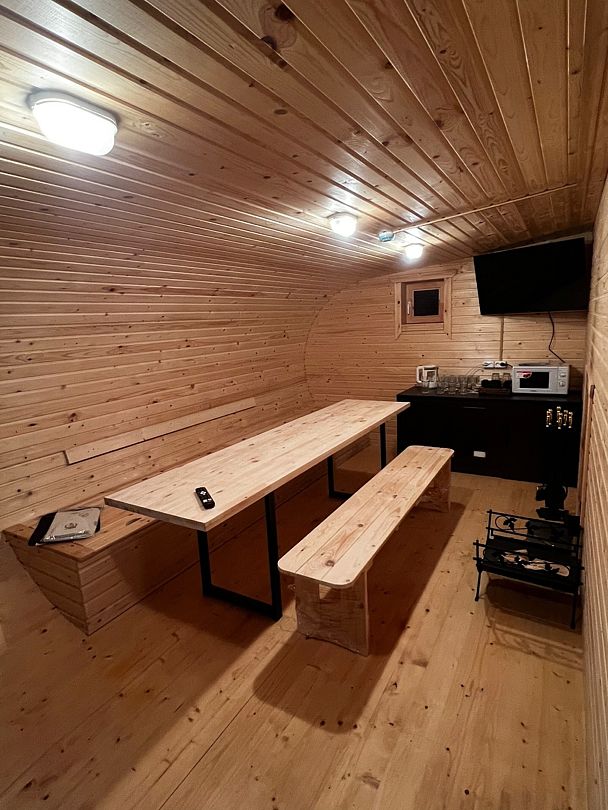 На территории установлены два просторных чана, каждый из которых идеально подходит для купания небольшой компанией или для романтического вечера вдвоем. Горячая вода, нагреваемая на дровах, помогает снять усталость, расслабить мышцы и восстановить силы после насыщенного дня. Традиционное купание в чане — это не только приятное времяпрепровождение, но и целебный ритуал, который наполняет энергией и улучшает самочувствие.